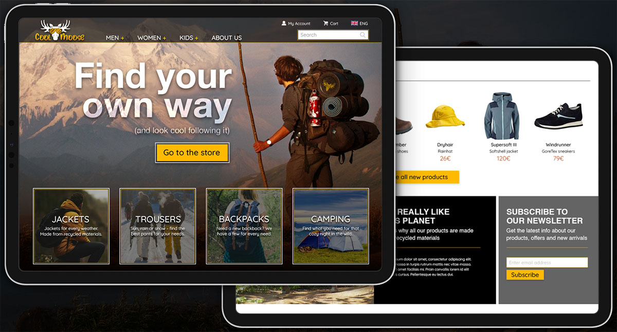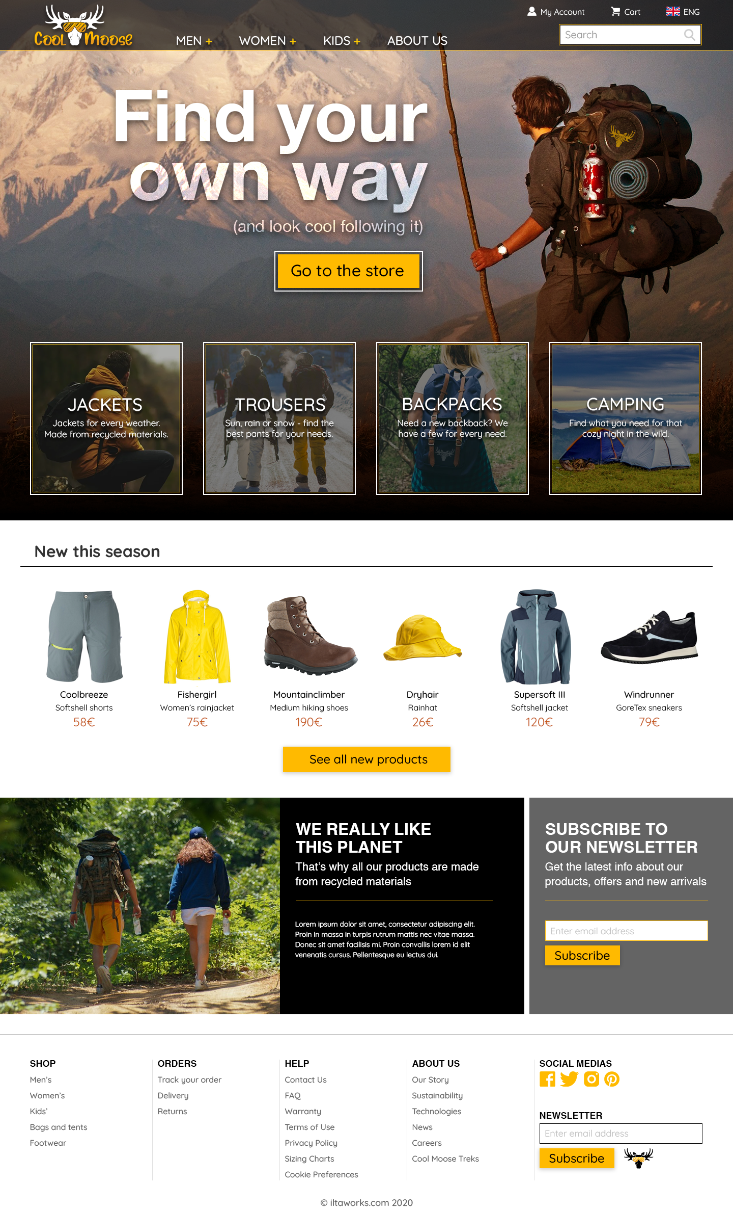 Logo & Web Design exercise made for fictional outdoors equipment company "Cool Moose".