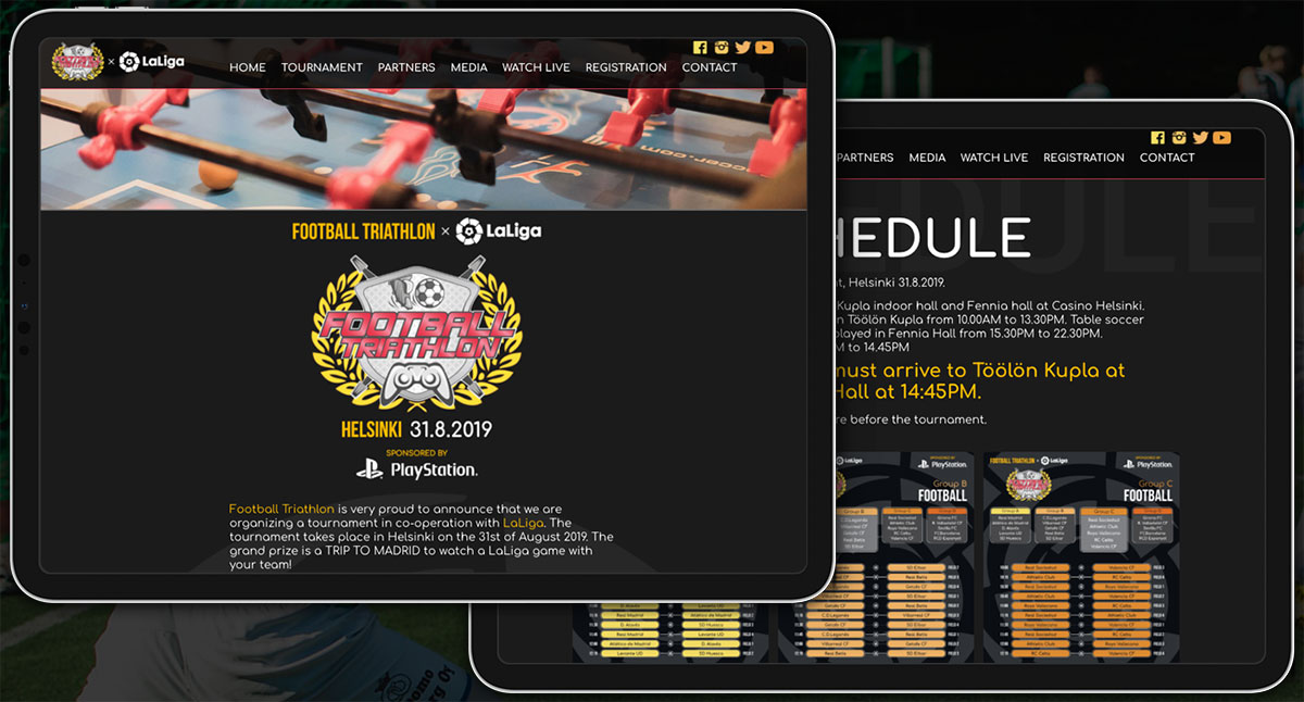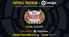 Football Triathlon x LaLiga tournament combines sports and esports around the most popular sport in the world! Teams compete against each other during one day in traditional FOOTBALL, TABLE FOOTBALL and VIRTUAL FOOTBALL.