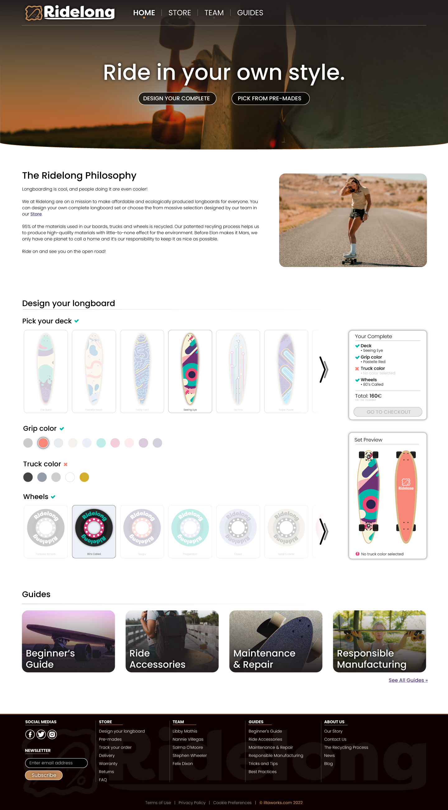 Logo & Web Design exercise made for fictional longboard company "Ridelong".